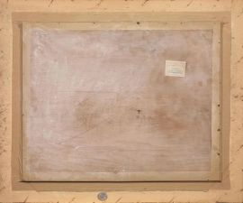 sul retro della tavola apposta al dipinto: etichetta "Galleria d'Arte / La Navicella / Viareggio"