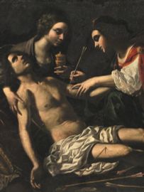 Come suggerito da Ciampolini, si impone altresì il confronto con la composizione di uguale soggetto dipinta da Francesco Rustici e nota in più esemplari, dipendenti dal probabile prototipo nel museo di Ekaterinburg reso noto da Vittoria Markova (cfr. Ciampolini 2011, cit., p. 53, nota 20): un dipinto che, come è tipico del Rustichino, appare tuttavia più discorsivo del nostro, e certo meno drammatico, oltre che attento a citare nella figura di Sebastiano il riferimento classico di una personificazione fluviale.