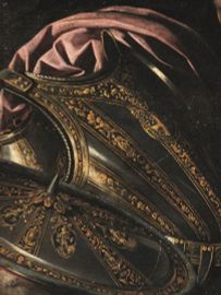 Ancora più sorprendente, la corazza e lo scudo “da parata”, senz’altro degni di un ufficiale di alto lignaggio, che anticipano motivi tipici della più tarda natura morta fiorentina e romana quando, privati di ogni giustificazione narrativa, gli stessi elementi saranno ritratti come simboli di ricchezza e potere, per quanto vani.