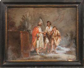 coppia di dipinti ad olio su vetro, cm 20x25 ciascuno