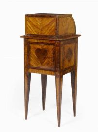 in bois de rose, parte superiore a saracinesca, tre cassettini e tablette estraibile, gambe troncopiramidali, cm 38x34x89