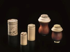 tre di forma cilindrica in avorio e due portagrilli con tappo in avorio (5)