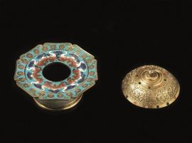 in metallo cloisonné decorato con pipistrelli e fiori, il coperchio dorato