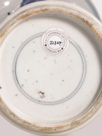 in porcellana bianca e blu, decorato in stile arcaico, alt. cm 24