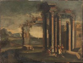 DUE CAPRICCI ARCHITETTONICI CON FIGURE E PAESAGGI MARINI