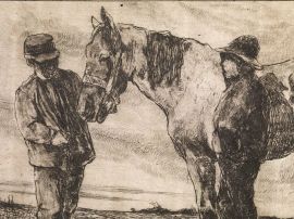 Da notare anche il cavallo, ritratto con forme rotonde, sane e muscolari dunque lontano dai ronzini maremmani, macilenti e stentati, che popolano come attori non protagonisti i suoi paesaggi di paludi e campagne. L’aspetto del cavallo in questa incisione sembra suggerire al contrario che esso sia protagonista di una storia; le sue qualità suggeriscono che le due figure, un contadino ed un sensale, ne stiano trattando la compravendita.