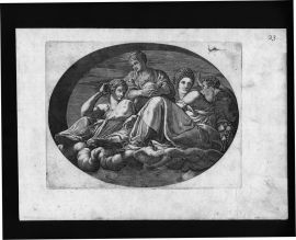 Serie completa ed omogenea di 4 incisioni monogrammate in lastra, da dipinti di Primaticcio per la Galleria di Ulisse a Fontainbleau eseguiti fra il 1541 ed il 1547 e poi perduti nella distruzione della stessa avvenuta fra nel 1738/39. Tutte le tavole sono successive all’abrasione dell’indirizzo di Lafreri, dunque nel III stato su 4 per Ercole e Venere, nel II stato su 2 per Cerere e nel III stato su 3 per Plutone.