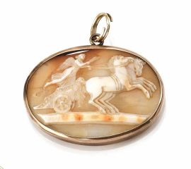 ballerina; una spilla-pendente a forma di ovetto con cammei raffiguranti