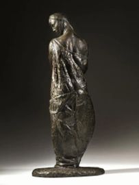 L'opera appartiene ad una cospicua serie di sculture in bronzo e in pietra che Andreotti, tra la fine della Prima Guerra e i primi anni Venti, eseguì assumendo temi semplici, spesso legati ad una quotidiana intimità femminile. Queste figure, solo apparentemente appartenenti ad una vita ordinaria, con la loro gestualità senza tempo erano specchio di un profondo senso etico e di una alta disciplina formale, entrambi fondati su antichi valori di cui Andreotti, e più in generale la cultura italiana, sentivano l'urgente bisogno come risposta alla drammatica contingenza del clima bellico. Con ciò Andreotti destò il caloroso consenso di Ugo Ojetti, il quale vide in questo nuovo corso post-parigino dello scultore una adeguata opportunità per dar corpo ai propri programmi di restaurazione di una classicità tutta italiana, fondata su una fedeltà alla tradizione scultorea dai Pisano a Canova. Così nel suo celebre saggio monografico apparso su "Dedalo" nel novembre del 1920, il critico esaltò questo gruppo di bronzi andreottiani: "tutte le opere sue, dopo il ritorno in Italia, prima a Lucca poi a Firenze, muovono da un sentimento nuovo. Una secchezza tutta toscana [...] definisce adesso il suo modellare, e i piani si succedono e si rispondono netti e decisi come parole ben scelte e ben pronunciate. Non una figura in movimento, [...] ma tutte statue che stanno salde sulle gambe ritte o ben sedute o accosciate, sicure sempre del loro equilibrio [...]. Quasi tutte donne. E le pieghe abbondanti delle loro gonne distribuite per gravi masse con buon giudizio, [...] mostrano questa ricerca del peso e del contrappeso che è l’essenza della scultura".