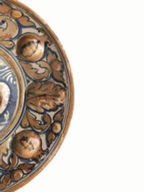 Maiolica decorata in blu di cobalto; lustri rosso e dorato
