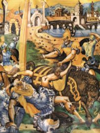 In quest’ambito va pertanto collocata questa crespina che, per caratteristiche tecniche e stilistiche, va ascritta alla mano di un decoratore di qualità, abituato all’uso delle incisioni. Le proporzioni, la qualità della pittura, lo stile sicuro nella definizione delle figure principali – in contrasto con uno stile più personale nelle figure secondarie, nelle quali gli elmi e le teste sono leggermente allungati – e la raffinatezza nel delineare i paesaggi e i dettagli ci paiono indicare in quest’opera la presenza di personalità artistica chiaramente sviluppata.