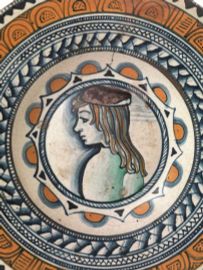 I piatti con ritratti, come quello in oggetto, appartengono alla categoria dei “ritratti amatori”, molto in voga tra la fine del ‘400 e gli inizi del ‘500, e prodotti da tutte le manifatture italiane. I piatti amatori ebbero grande fortuna a Faenza e raggiunsero il massimo sviluppo nei piatti da pompa prodotti proprio dalle botteghe di Deruta, espressione dell’usanza, tipicamente rinascimentale, del far dono di stoviglie in pegno d’amore o per particolari occasioni. Spesso tali oggetti raffiguravano il ritratto dell’amato o dell’amata, o un simbolo che evocasse il patto d’amore.
