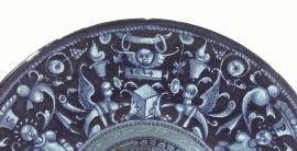 Per l’esame del piatto londinese e dei confronti ci torna assai utile lo studio di Timothy Wilson, pubblicato in occasione dell’importante mostra sul banchiere fiorentino Bindo Altoviti tenutasi nel 2004 all’Isabella Stewart Gardner Museum di Boston e al Bargello di Firenze. Oltre al nostro sono noti infatti altri pezzi di questo servizio, conservati rispettivamente al Museo di Edimburgo ed all’Allen Memorial Art Museum di Oberlin; un quinto fu pubblicato nel catalogo della vendita Chevret nel 1951. Tutti questi cinque piatti sono stati pubblicati nella scheda contenuta nel catalogo della mostra: tra di loro quindi è presente anche il nostro, noto perché proveniente dalla celebre raccolta Adda.