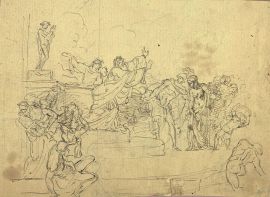Scena storica. Penna e inchiostro bruno su carta vergellata. mm 220x300.