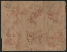 Studio di sei volti femminili. Matita rossa su carta vergellata. mm 274x355.