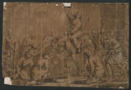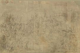 Scena storica. Penna nera e matita di grafite su carta vergellata. mm 337x515.