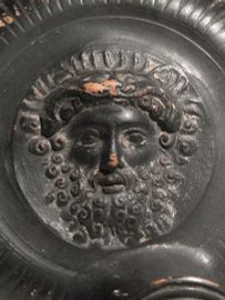 Materia e tecnica: argilla figulina arancio, vernice nera lucente e bianca;