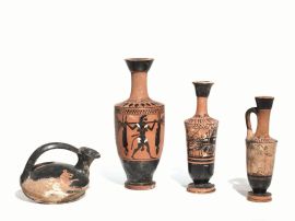 Tre lekythoi attiche a figure nere e a fondo bianco