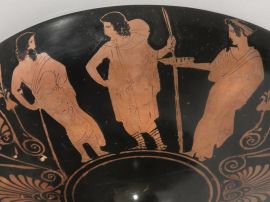 Materia e tecnica: argilla figulina arancio; vernice nera lucente,