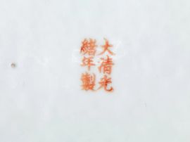 Fioriera Cina sec XIX, in porcellana decorata con fiori e iscrizioni , cm 22x9x16,5