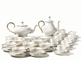 Servito da thè e caffè Ginori, fine sec. XIX, in porcellana bianco-oro,