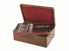 manici decorati da motivi a conchiglia, composto di centotrentasette pezzi, g 8255, entro scatola