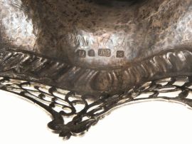 in argento, corpo sferico decorato da nastro di fiori con fiocco, base quadrata sagomata con bordo traforato poggiante su quattro piedini realizzati come artigli su sfere, due anse, finale del coperchio a fiamma, alt. cm 52, g 2355