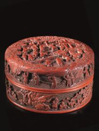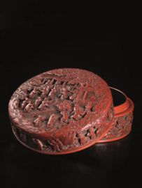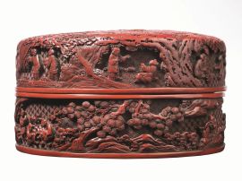 圆形朱漆盒,有盖。中国 清乾隆年间 (1736-1795) 直径