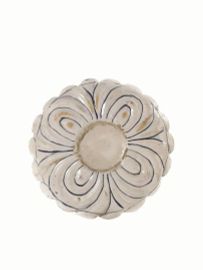 Crespina formata a stampo con umbone centrale rilevato, orlo mosso e corpo sbalzato.