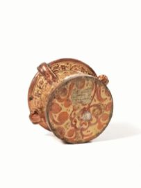Sotto la base etichetta quadrata stampata con la scritta “EXPOSITION NATIONALE/ DE CÉRAMIQUE/ 1897/ SECTION RETROSPECTIVE” e a mano “356”. Altra etichetta rotonda stampata della COLLECTION IMBERT ROME, al centro numero scritto a mano poco leggibile.