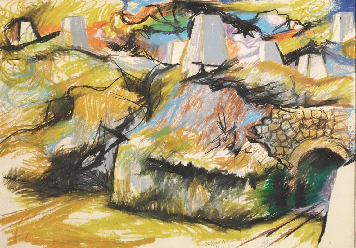 pastelli su carta applicata su compensato, cm 49,6x70