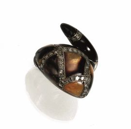 Demi-parure composta da bracciale e anello in tartaruga, oro 14 kt e argento sterling