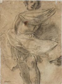 Gessetto nero e tracce di matita bianca su carta vergellata grigio-verde. mm 315x234.