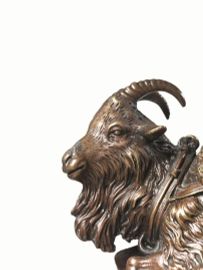 in bronzo, modellata come un caprone assiso con sella, alla maniera del Riccio cm 9x15, su base in marmo
