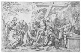 Monogrammata e datata “1593” in basso a sinistra. Da un dipinto di Paolo Farinati per la Chiesa dei Cappuccini di Verona. III stato su 3 dopo il cambio della data e dell’aggiunta dell’excudit di Gaspare dall’Oglio.