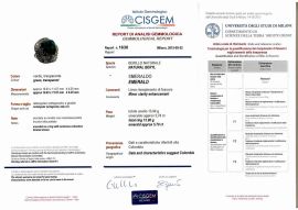 al centro uno smeraldo di 5.70 ct entro doppia cornice in brillanti e baguette dal profilo ondulato, corredato di certificato CISGEM n. 1630, datato 22/09/2015