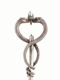 base circolare sbalzata fusto con doppio nodo decorato da foglie lanceolate, coppa porta olio a quattro beccucci sormontata da vaso ad anfora, finale realizzato come due serpenti annodati, ventola elegantemente modellata come una farfalla, completa di quattro attrezzi, alt. cm 91, g 3195