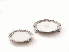 in argento, di forma circolare sagomata, piani decorati da stemmi e volute, diam. cm 22, cm 23,5, cm 18,5 e cm 24, 5, complessivi g 1675 (4)