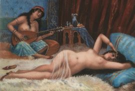 in metallo argentato, all'interno decorazione a smalto raffigurante figura femminile in ambiente medioorientale, cm 9x7,9