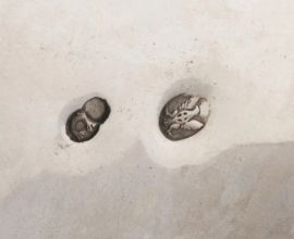 in argento, coppa poggiante su quattro piedini a zampa ferina uniti al corpo da grandi foglie, due anse con finale a teste di cigno, presa del coperchio a pigna, alt. cm 18,5, g 660