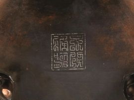 A SILVER INLAID BRONZE CENSER VIETNAM 19TH CENTURY