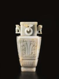 in giadeite, decorato con motivo di Taotie a rilievo il collo con prese a rilevo moldellate nella forma di Qilin alt. cm 23,5
