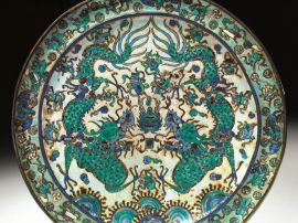 policromi, raffiguranti coppia di draghi affrontatati, diam cm 20