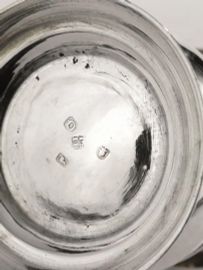 Tankard, Londra 1769, in argento, corpo decorato da stemma araldico tra volute vegetali, presa a doppia voluta, alt. cm 20,5, g 870, g 870