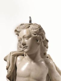 Nell’artificiosa posa delle figure inginocchiate e animate dal “contrapposto” delle teste, così come nelle chiome fluenti e quanto mai abbondanti, si coglie il ricordo di certi modelli che furono cari alla scultura fiorentina che dalla seconda metà del Cinquecento si inoltrò nel Seicento attraverso le esperienze di maestri come Giovanni Battista Caccini (1556-1613), Michelangelo Naccherino (1550-1622) e Felice Palma (1583-1625), fino ad Antonio Novelli (1600-1662) e Domenico Pieratti (1600-1656). In tal senso i due Angeli paiono discendere dalle generazioni di putti danzanti delle fontane e delle grotte di Pitti, ma ad una osservazione più attenta e dettagliata non sfugge come il loro autore sia ormai aggiornato sul linguaggio artistico che usiamo chiamare “barocco”, indirizzando dunque a una datazione ben inoltrata nel Seicento. A indicarlo sono chiaramente la tipologia delle nubi scolpite a fare da basamento, nonché la resa ormai languida delle carni (prive delle ridondanti muscolature di tradizione michelangiolesca), e pure l’esecuzione della capigliatura, mossa da ciocche ampie e corpose che mostrano una certa affinità con le soluzioni adottate, ormai nella seconda metà del secolo, da uno scultore come Carlo Marcellini (1643-1713), per esempio nella serie di angeli che impreziosiscono la navata della Santissima Annunziata a Firenze. Anche i panneggi che dalle spalle calano a coprire le pudenda degli angeli, tanto nella tipologia quanto nelle increspature, richiamano soluzioni care a Marcellini, si pensi alle coppie di angeli del basamento della cappella maggiore della chiesa fiorentina di Santa Maria Maddalena de’ Pazzi. Formatosi negli anni settanta del Seicento nella Roma di Ercole Ferrata e Ciro Ferri e protagonista della Firenze artistica dei decenni a cavallo del 1700 che vide brillare l’astro di Giovan Battista Foggini (1652-1725), Marcellini fu tuttavia scultore profondamente segnato dalle entusiasmanti novità sentimentali della scultura berniniana. Nonostante le sculture presentino talune affinità con le opere di Marcellini, sarebbe incauto attribuirle con certezza alla mano dell’artista, che si distingue per un maggiore grado di languida sdolcinatezza barocca. Esse dovrebbero piuttosto spettare a un maestro di una generazione precedente, oppure ad uno scultore di un’area più periferica come Pisa o Carrara.