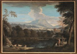 PAESAGGIO FLUVIALE CON CONTADINI E ARMENTI