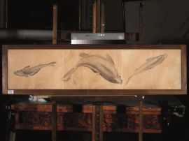 Cinque dipinti a inchiostro su carta, Giappone, XX secolo, raffiguranti
