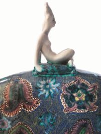 Questo modello di Francesco Nonni, appartenente al famoso “Corteo” in mostra all’Esposizione di Parigi del 1925, venne realizzato da Melandri in diverse misure e con sempre nuove soluzioni decorative, spesso rifinite in oro o con dettagli a lustro.