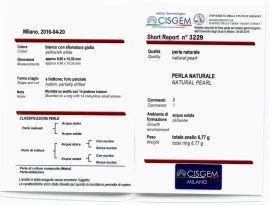 al centro una perla naturale entro cornice di brillanti, corredata di certificato CISGEM n. datato