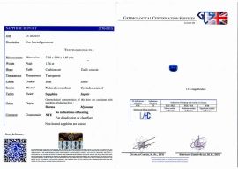 al centro uno zaffiro ovale di 1.76 ct affiancato da due brillanti taglio vecchio, corredata di certificato GCS n. 5776-3315 datato 15/10/2015 che indica assenza di trattamento, 2 g